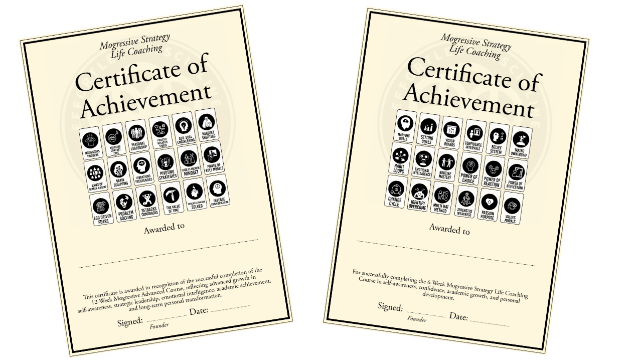 Whether you need a structured 6-week reset or a deeper 12-week rebuild, Mogressive Coaching helps you cut the noise, install systems that stick, and lead your life with clarity.